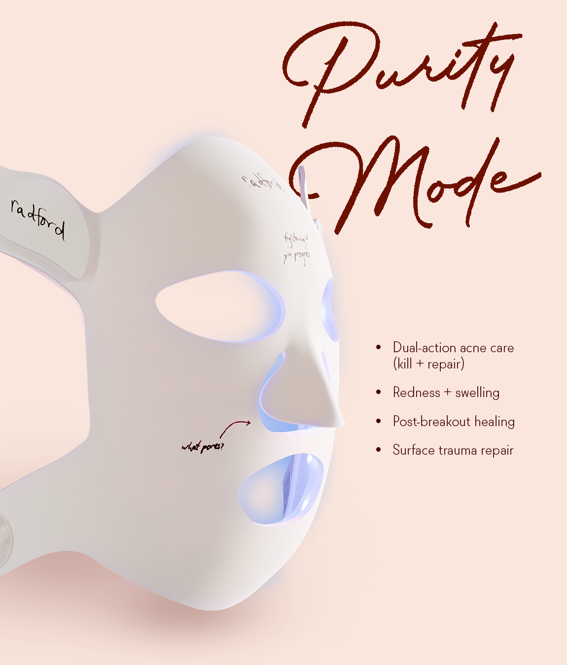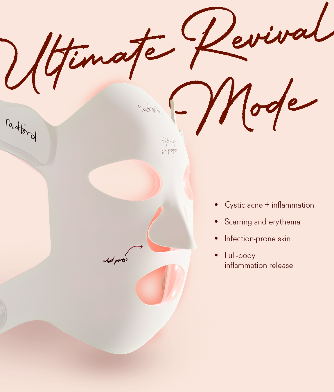 A go-to ritual for acne-prone or reactive skin. Blue 415nm and Near Infrared 830nm wavelengths clarify on contact, fighting acne-causing bacteria while soothing the skin beneath.