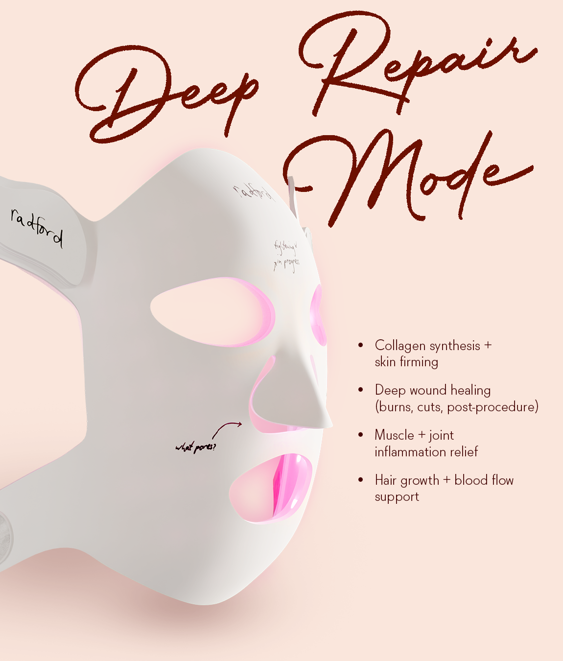 Best for post-treatment recovery and skin reset. Red 630nm to rebuild, Deep Red 660nm to restore, and Near Infrared 830nm combine to calm below the surface.