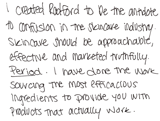 We are a skincare brand that focuses on what matters - what's inside the bottle. There is no distracting marketing or ultra-fancy packaging, just great products and great people, who want to make skincare simple. We are committed to doing the work so that you don't have to: providing gentle, yet potent products needed for an effective routine.